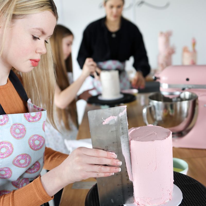 This class is for a an adult and child (we recommend the child's age between 6 to 18 - this is child dependent. If you feel that your younger child has the concentration span to be able to particiate and enjoy the class then they are welcome to attend too). You will work together on one cake.